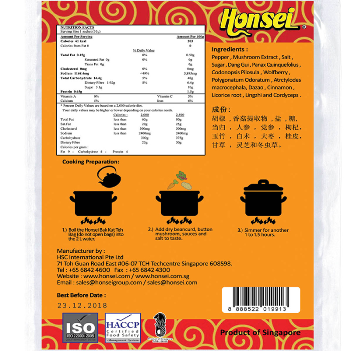 1) Boil the Honsei Bak Kut Teh Bag (do not open the bag) into 2 litter water